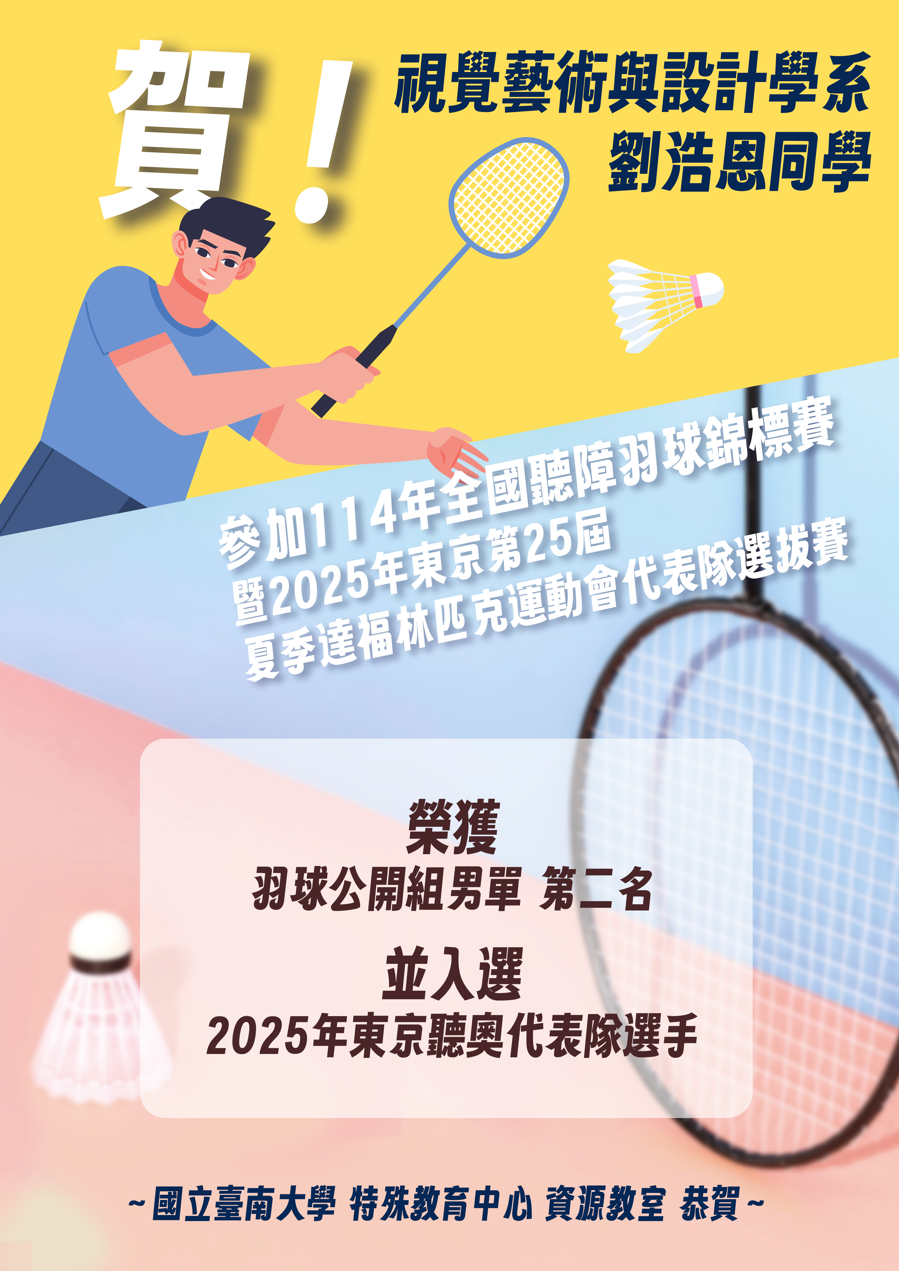 ~國立臺南大學 特殊教育中心 資源教室 恭賀~